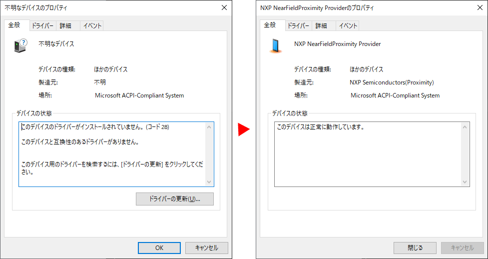 ネットワークに接続して自動アップデートされた約4時間後のデバイスマネージャー。